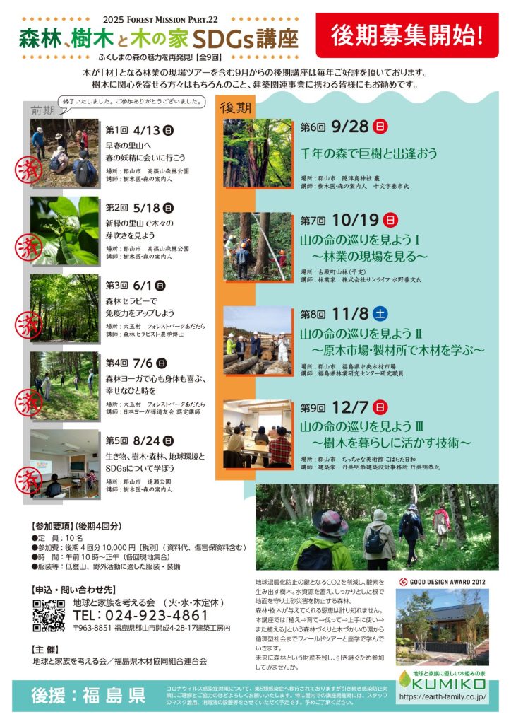 <森林、樹木と木の家 SDGs講座 2025> 後期参加者募集のご案内